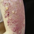 Less common cutaneous findings include an exfoliative erythroderma as well as vesiculobullous, erosive, and ulcerative lesions. Patients with myositis can also develop the lesions of other collagen–vascular diseases. The presence of these types of lesions allows physicians to classify the patients into an overlap category. In general, sclerodermatous skin changes have been the most frequently seen in patients with overlap syndrome. However, cutaneous vasculitis, discoid lupus erythematosus, and rheumatoid nodules have also been known to occur in patients with dermatomyositis.