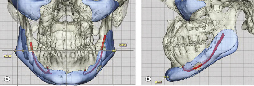 CAD/CAM implants are ideal for patients with significant facial asymmetry. Asymmetries are three-dimensional. They can be thought of as twists of the skeleton. As demonstrated in Fig. 14.1 , asymmetry in the mandible is more than an asymmetry in lower facial width. Note the difference in ramus height and border inclination.