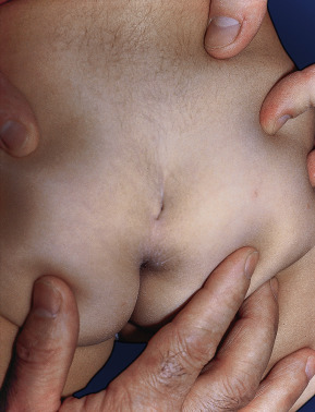 | Lipomas | Soft subcutaneous mass, asymmetric buttocks, curved gluteal cleft ( Fig. 64.14 ) |