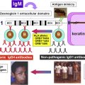 The pathogenic autoantibodies of PF are of the IgG4 subclass, which has been demonstrated by their passive transfer from human sera to neonatal mice. These IgG4 autoantibodies recognize antigenic epitopes located on the N-terminus of the ectodomain of dsg-1, specifically on extracellular domains 1 and 2. The binding of pathogenic IgG to dsg-1 triggers the phosphorylation of p38 mitogen-activated protein kinase, which is thought to induce apoptosis of the affected keratinocyte. Although complement component (C) 3 deposition on direct immunofluorescence (DIF) initially suggested that it may play a role in acantholysis in PF, both C5-deficient mice and total complement-depleted mice develop subcorneal vesicles upon passive transfer of pathogenic human sera. The pathogenesis of PF is covered elsewhere in this issue in more detail by Valeria Aoki.
