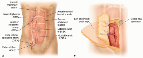 Generally, lateral row perforators pierce the muscle perpendicular to the plane of the flat, straplike, rectus abdominis muscle and are easier to dissect compared to medial row perforators, which tend to travel obliquely, from medial