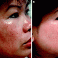 Exogenous PDT as discussed above depends on an external photosensitizer, such as 5-ALA. In endogenous PDT, the photosensitizer, or photosensitizing substances, can be found occurring naturally within the target cells or tissue. The exogenous application of 5-ALA induces the synthesis of the porphyrins Pp IX and CP III nonselectively in the epidermis and dermis under the area of application as already explained above. However, in the case of acne vulgaris the inflammatory acne lesions are associated with the presence of their causative bacterium, Propionibacterium acnes (P. acnes). It has been well demonstrated that both Pp IX and Cp III are endogenous to active P. acnes, and the more active is the bacterium, the higher the porphyrin concentration.16–18 Referring again to Fig. 13, maximum photoactivation of both Pp IX and Cp III occurs at around 415 nm. Light at that wavelength, with a high enough photon intensity, could therefore achieve activation of the porphyrins within the P. acnes, thereby selectively destroying or at least severely damaging the P. acnes through oxidative stress-induced apoptosis,19 but without harming the surrounding skin cells. Endogenous PDT could therefore be applied in the light-only treatment of inflammatory P. acnes lesions without the need for any exogenous 5-ALA. This will be discussed in more detail in the appropriate part of the following section.