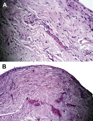 ADM is a biotechnological tissue prepared from either human or porcine skin. During processing, the cellular components that cause rejection and inflammation are removed, producing a structurally intact tissue matrix that serves as the biologic scaffold necessary for tissue ingrowth, angiogenesis, and, ultimately, tissue regeneration. ADM has been used extensively for soft tissue augmentation, including lip augmentation, depressed scar tissue repair, malar and submalar augmentation, rhinoplasty, and more recently for breast reconstruction. In all these settings, the ADM has shown good incorporation, with excellent postoperative healing, no resorption, and minimal risk for infection, extrusion, hematoma, or seroma. In addition, because this tissue is acellular, it may have greater tolerance for ischemia because it has the capability to remain in place without breakdown until vascular ingrowth and cellular integration develops. This process can be shown by a biopsy of the ADM at 6 weeks after surgery ( Fig. 1 ).