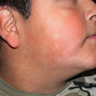 The face, especially the cheeks, is most often affected. Less often, it affects the upper extremities.