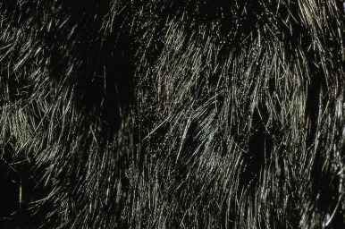 Trichorrhexis nodosa, the most common hair shaft anomaly, is a distinctive disorder manifested by increased fragility. Grayish-white nodules may be seen on the hair ( Fig. 7-3 ), which under trichoscopy or light microscopy have the appearance of two interlocking brushes or brooms, the result of segmental longitudinal splitting of fibers without complete fracture. The disorder features dry, lusterless, short hair that is easily fractured.