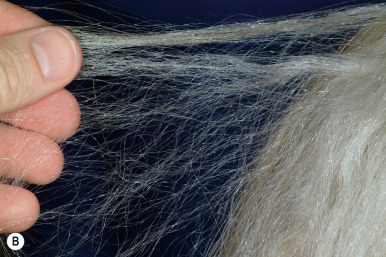 Special tests: trichoscopy of shaft, hair pull, hair tug, hair mount (see Box 7-3)