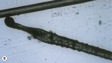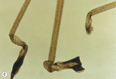 Variations in the structure of the hair shaft are a common occurrence and at times may provide clues to other pathologic abnormalities ( Box 7-4 ). Because each hair shaft anomaly has a distinctive morphology, the diagnosis often can be established in the office by trichoscopy (using a dermatoscope) (see Box 7-3 ) or by microscopic examination of snipped hairs. Other than reduction of trauma to reduce breakage, there is no effective treatment for this group of disorders.