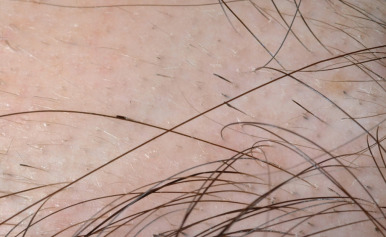 • Trichoscopy : Can replace hair mounts and microscopy when examining shaft. Disease-specific findings such as for alopecia areata (follicular openings showing yellow dots; “exclamation-point” hairs), tinea capitis (comma or corkscrew hairs), and trichotillomania (coiled or flame hairs); black dots at follicular opening suggest broken hairs and can be seen with alopecia areata, tinea, and trichotillomania.