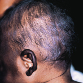 OCA affects 1 in 17,000 persons in the United States. The highest prevalence (as high as 1% of the population) occurs in the indigenous Cuna tribe on the San Blas Islands off the coast of Panama. Affected Cuna children have been called moon children because they have marked photosensitivity and photophobia and prefer to go outdoors only at night. In some African tribes, the frequency is 1:1500. OCA is characterized by varying degrees of unpatterned reduction of pigment in the skin and hair, translucent irides, hypopigmented ocular fundi, and an associated nystagmus. Melanocytes and melanosomes are present in the affected skin and hair in normal numbers but fail to produce normal amounts of melanin. Regardless of subtype, affected individuals require vigorous sun protection of the skin and eyes and are at risk of adverse psychosocial effects because of the cosmetic aspects of albinism, especially in children from darker-skinned backgrounds. In addition to the stigma and potential social isolation, affected individuals in Africa have been maimed or killed because of the myths associated with albinism (contagion, body parts with magical and medicinal powers, intercourse with an affected woman will cure human immunodeficiency virus [HIV] infection).