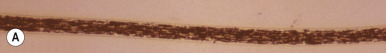 In the past, albinism was divided into tyrosinase-negative and tyrosinase-positive forms based on the ability (tyrosinase-positive) or inability (tyrosinase-negative) of plucked hair to become pigmented in the presence of tyrosine or DOPA. Tyrosinase-negative albinism, now called type I albinism ( OCA1 ), results from absence (OCA1A) or partial reduction of the activity (OCA1B) of tyrosinase, the critical enzyme in melanin formation (see Table 11-1 ). The underlying genetic bases for most forms of tyrosinase-positive albinism are also known. Type II albinism (OCA2) results from the absence of P protein, OCA3 from absence of TRYP1, and OCA4 from mutations in membrane-associated transporter protein (MATP). Types OCA5–7 have been only been described in one to a few families (see Table 11-1 ).