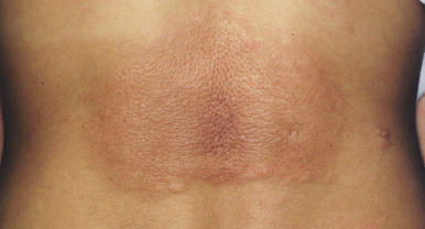 Tuberous sclerosis. The shagreen patch is characteristically found at the lumbosacral area and has a peau d’orange texture.