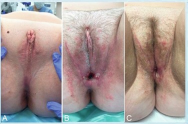 PAIS is a collection of X-linked disorders characterized by a wide array of phenotypic manifestations of incomplete masculinization including the presence of ambiguous genitalia. These patients have a 46XY karyotype but unlike their CAIS counterparts, they are often identified at birth. Classically, patients are found to have some combination of hypospadias, rudimentary Wolffian duct remnants, gynecomastia, and infertility. Hundreds of mutations have been identified in PAIS but most commonly, patients have a reduced number of androgen receptors or decreased binding affinity in these receptors for testosterone. Treatment for patients with PAIS is predicated on the inevitable virilization of the ambiguous genitalia and their subsequent appearance. If raised as male, patients with cryptorchid testes undergo orchidopexy; gynecomastia is addressed and genital reconstruction is performed. Surveillance of the testicles by a urologist is important, as there is an increased risk of testicular malignancy in these patients. Contrary to CAIS patients, patients with PAIS are considered at high risk for testicular malignancy. Therefore in those patients who are raised as female, early gonadectomy is recommended. In these patients, genital reconstruction with procedures such as bowel vaginoplasty with labioplasty is an option, and we report excellent outcomes at our institution ( Fig. 4.3 ) . Last, patients raised as females will need adjunctive hormone therapy starting at puberty. Gender identity in patients with PAIS is an intriguing topic, and there is evidence showing that brain androgen receptors have the same mutation for partial androgen insensitivity as the other end-organ targets. Studies have found that the gender in which a PAIS child is reared often correlates with that individual’s gender identity when he or she is an adult.