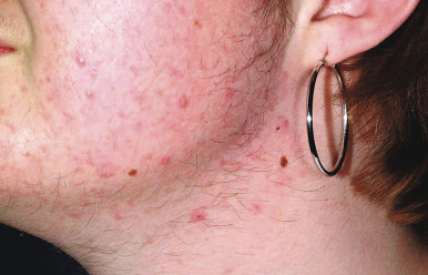 In addition to the established pathogenic factors discussed previously, there may be other triggers or exacerbating conditions that contribute to acne vulgaris. These other factors are less well understood and in some cases controversial. Stress appears to be a common trigger for acne, possibly via increased activation of the hypothalamic–pituitary–adrenal axis and the resultant increase in androgen production. Acute worsening of acne has been documented in college students during examination periods and correlated with an increased perceived stress score. Mechanical factors such as skin occlusion from sports gear (i.e., helmets, chin straps, shoulder pads) may exacerbate the condition. Topically applied preparations, especially pomades and greasy ointments, to hair or skin may contribute to physical obstruction of the pilosebaceous unit and worsen the disease. Several medications may worsen acne, including anabolic steroids, progestins, lithium, isoniazid, hydantoin, and gold. Pathologic androgen excess is often associated with acne (see below), and although endocrinologic evaluation is not indicated for the majority of patients, it should be considered in patients who have additional signs as listed in Box 8-2 .