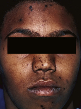 Propagation of acne lesions occurs when Propionibacterium acnes, a resident anaerobic organism, proliferates in this environment of sebum and follicular cells with the production of chemotactic factors and proinflammatory mediators, which contribute to inflammation. Hypersensitivity to this organism may also play a part in the more severe forms of acne. The clinical counterpart to these infectious and inflammatory events are papules and pustules. With continued inflammation and macrophage recruitment, larger lesions (cysts and nodules) may result. Finally, sequelae of active acne lesions include dyspigmentation (usually hyperpigmentation or, occasionally, hypopigmentation) and scarring. Box 8-1 summarizes the various types of acne lesions.