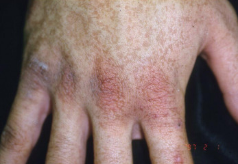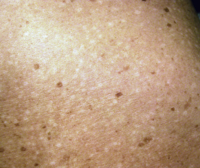 Hypopigmented lesions are prominently lighter than the surrounding area. Histologically, there is melanin in the upper dermis and around upper dermal vessels, located primarily in macrophages (melanophages). The pattern of the dermal melanosis does not predict whether the lesion will be lighter or darker as a result of the prior inflammatory process—thus the tendency of pathologists to provide a diagnosis of “postinflammatory pigmentary alteration” (PIPA) in such cases.
