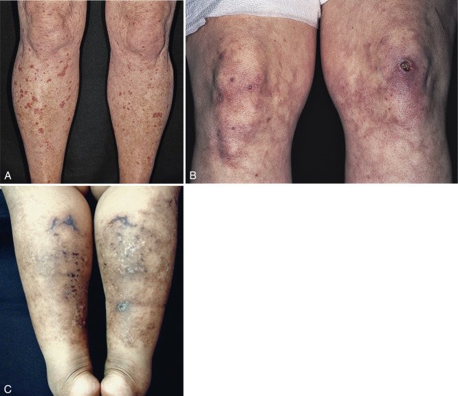 A wide variety of diseases associated with monoclonal immunoglobulin or light-chain production may cause cutaneous lesions, and these will be addressed by category: those directly related to monoclonal protein (e.g., cryoglobulin), those frequently associated with gammopathy (e.g., scleromyexedema), and those resulting from abnormal metabolism of monoclonal proteins (e.g., light-chain-related amyloidosis).