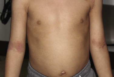 . The sites most commonly involved are those areas that are easily reached and associated with habitual scratching (e.g., dorsal feet, lateral forearms, anus, and occipital scalp), areas where eczema tends to be long-lasting (e.g., the lower legs, as in stasis dermatitis), and the crease areas (antecubital and popliteal fossae, wrists, behind the ears, and ankles) in atopic dermatitis ( Figs. 3.20 to 3.24 ).