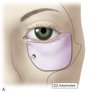 The earliest techniques for midfacial rejuvenation utilized temporal and preauricular incisions with extensive peripheral to central dissection. In contradistinction, the transblepharoplasty subperiosteal technique can be done effectively through a single subciliary incision to address the midface, with other incisions added in those cases of more significant aging that require simultaneous browlift or necklift procedures. By confining dissection to the central subperiosteal plane, there is less risk of facial nerve injury and less interruption of blood supply to facial soft tissues. The subperiosteal dissection allows a more complete release of midfacial soft tissues including the retaining ligaments. The composite flap of malar fat, SMAS, muscle and periosteum can then be most effectively elevated to reposition cheek skin, restore malar prominence, eliminate tear trough deformities, and soften nasolabial lines.
