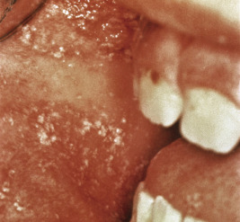 Generalized lymphadenopathy often occurs, especially in the suboccipital, postauricular, and cervical regions. Although this pattern of lymph node enlargement is highly characteristic of rubella, it is not pathognomonic and may occur in other disorders including measles, varicella, adenovirus infection, and mononucleosis. Arthralgias and arthritis are common, especially in females in whom they occur up to 52% of the time. The most common joints affected are those of the fingers, wrists, and knees. Complete resolution of the joint symptoms may take up to several weeks, and chronic arthritis occasionally develops. A characteristic enanthem, Forschheimer spots, may be present in patients with rubella and presents with erythematous and petechial macules on the soft palate. Other complications of rubella include encephalitis (which occurs in 1 in 6000 patients), myocarditis, pericarditis, and hepatitis. Anemia, neutropenia, and thrombocytopenia may also occur, as may hemolytic uremic syndrome.