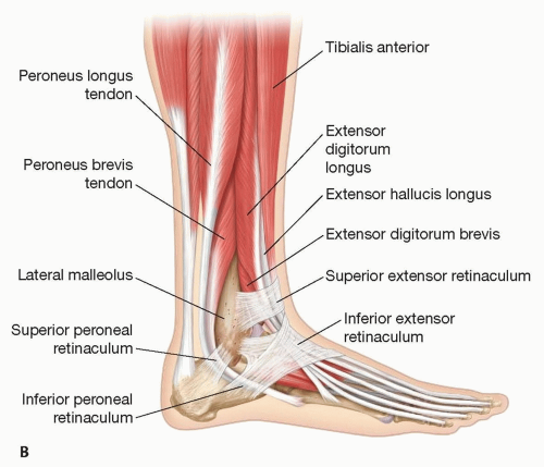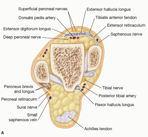 FIG 1A. Cross-sectional anatomy of the ankle. Notice that the tendons are contained within a retinacular layer.