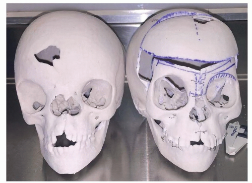FIG 4 • Example of a 3-D skull model before and after mock surgery.