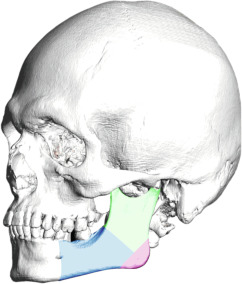 Blue: mandibular body; pink: mandibular angle; green: ascending ramus.