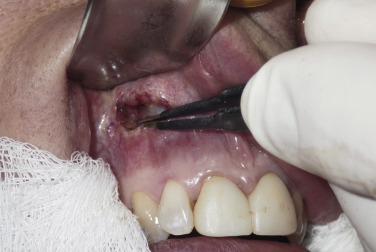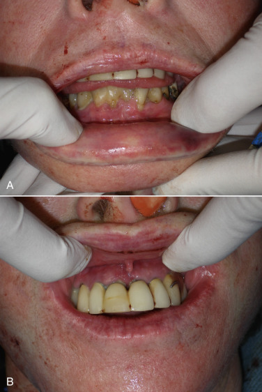 During preoperative evaluation, it is also important to evaluate the patient’s oral health. Placing implants in the presence of dental or periodontal disease can severely compromise the case and result in infection ( Fig. 7.6 ). Patients with oral disease must be treated to achieve a normal state of oral health prior to implant placement. All implant patients require a panoramic radiograph or computed tomography (CT) scan to rule out any osseous or dental or sinus pathology.