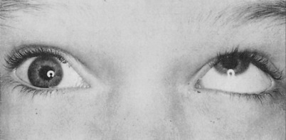 Blow-out fracture in a child produced by a snowball. Note the nearly complete immobility of the ocular globe and the enophthalmos. Such severe loss of motion implies actual muscle incarceration, an injury that is more frequent in children than in adults. This fracture deserves immediate operation with release of the incarcerated extraocular muscle system. It is often accompanied by pain on attempted rotation of the globe and sometimes nausea and vomiting. These symptoms are unusual in orbital floor fractures without true muscle incarceration.