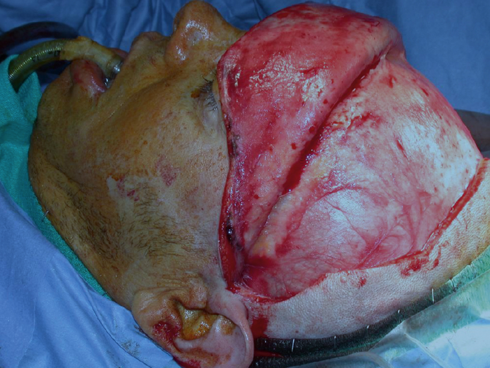 A completed frontal reconstruction after a severe frontal crush.