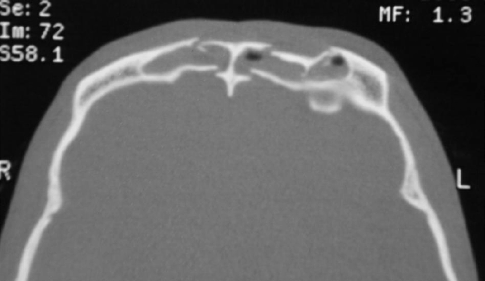 CT scan showing fractures of the anterior and posterior walls of the frontal sinus.
