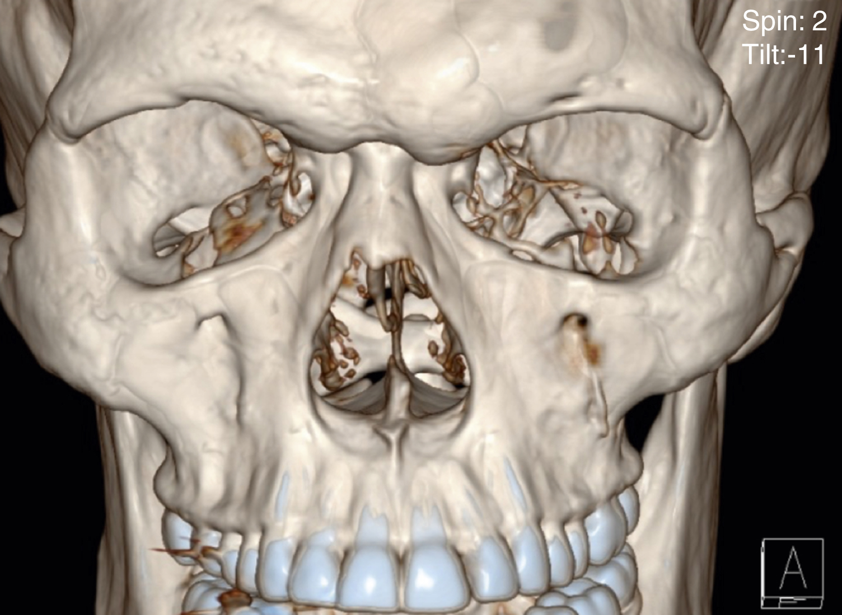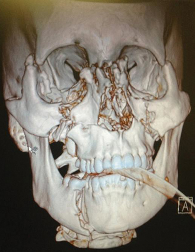 3D CT scan showing panfacial fractures.