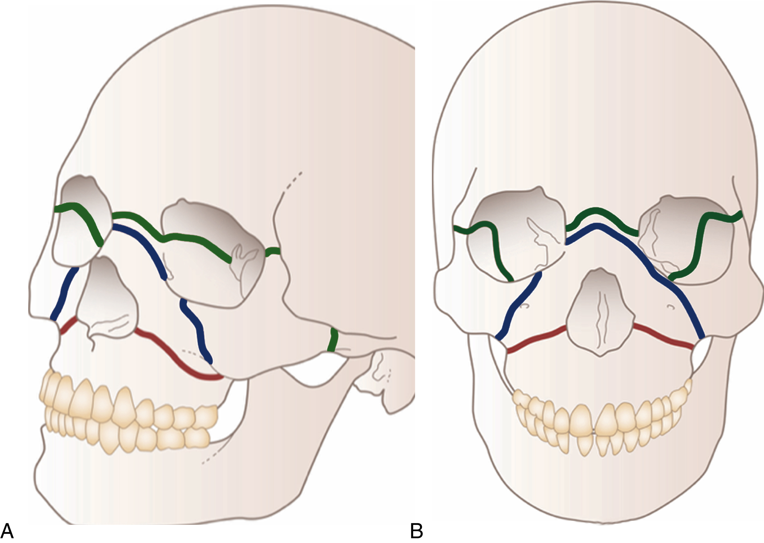 The language associated with this form of description is now so embedded that it ceases to be scientifically meaningful; it does not take into account the degrees of comminution and displacement of fragments, nor does it mention the parasagittal fractures of the hard palate and the smaller dentoalveolar segment fractures of the upper jaw. It certainly does not relate the severity of the maxillary fracture to other areas of the craniofacial skeleton. It is the author’s belief that alphanumeric classifications are superior in this respect.