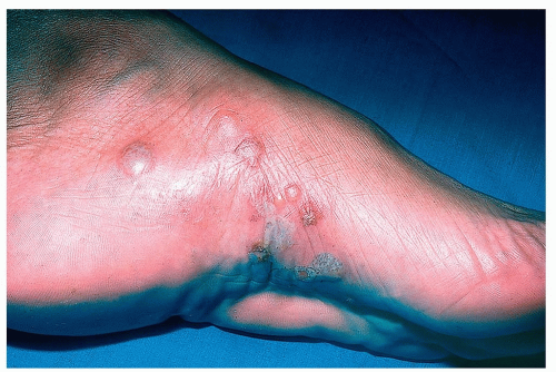 Borders are distinct along the sides of the feet and may extend to the Achilles area (Fig. 19-4)