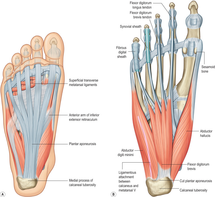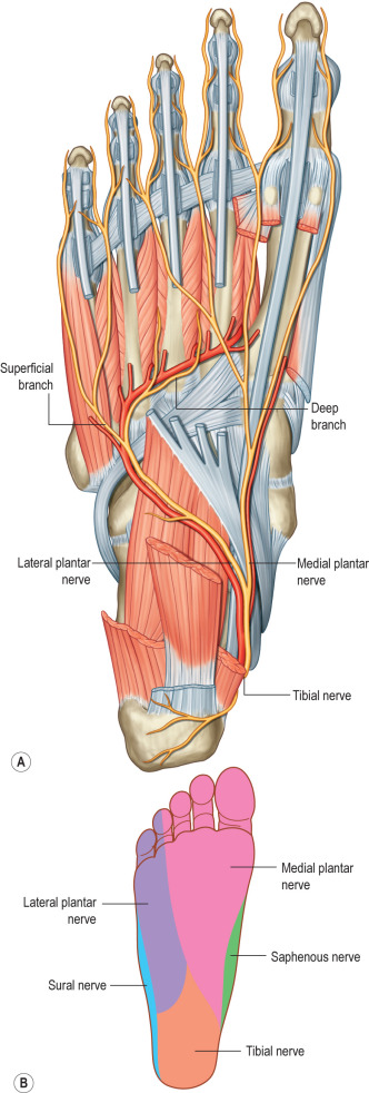 A comprehensive pre-operative assessment of the patient is key to successful reconstructive planning. A thorough patient history and physical examination should be performed. When the history is obtained, the patient’s mechanism of injury and any existing comorbid conditions, such as neuropathy, peripheral vascular disease, collagen vascular disease, and/or venous stasis, should be documented. As well, knowledge of vital foot and ankle anatomy is essential to understanding the patient’s pathological process. An overview of pertinent regional anatomy is depicted in Figs. 4.10.2 through 4.10.5 . Upon performing the physical examination, one should assess acute foot burns for depth, area, and location of burn. For purposes of reconstructive planning, the foot and ankle should be considered in three anatomical subunits: (1) dorsal (foot and toes), (2) plantar (foot-arch, toes, and heel), and (3) ankle (anterior, posterior, medial, and lateral). The importance of these anatomical subunits will be further addressed in the Surgery section of this chapter. In assessing burn contracture deformities of the foot and ankle, one should examine the extent of the scarring and soft tissue contracture, active and passive range of motion, limb length, ambulation, and the presence of any chronic wounds. Radiographic studies may also be obtained to evaluate for any underlying bony abnormalities or evidence of heterotopic ossification.