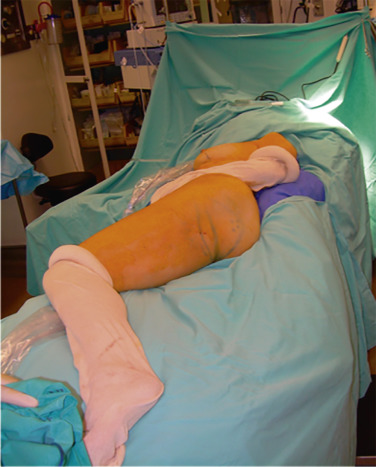 For deep venous thrombosis prophylaxis, a subcutaneous heparin injection is given preoperatively and sequential compressive devices are placed on the legs. A prophylactic dose of antibiotic is given, a urinary catheter inserted and general anesthesia given. For a unilateral breast reconstruction, the patient is placed in the lateral decubitus position with appropriate padding of pressure points supported with a bean bag. The upper and lower extremities on the side of the breast reconstruction are prepped in the field. For a unilateral breast reconstruction, a gluteal flap is harvested from the same side of the body as the reconstructed breast. The mastectomy and GAP flap dissection can be performed simultaneously ( Fig. 5.6 ). After the flap is harvested, the patient is placed in supine position for microsurgical anastomosis to the internal mammary vessels and flap insetting. For bilateral simultaneous breast reconstruction, the patient is first placed in a supine position for the mastectomy and preparation of the recipient vessels in the chest. The patient is then placed in the prone position for harvesting of the GAP flaps and closure of the donor sites. The patient is turned again to the supine position for microsurgical anastomosis and flap insetting.