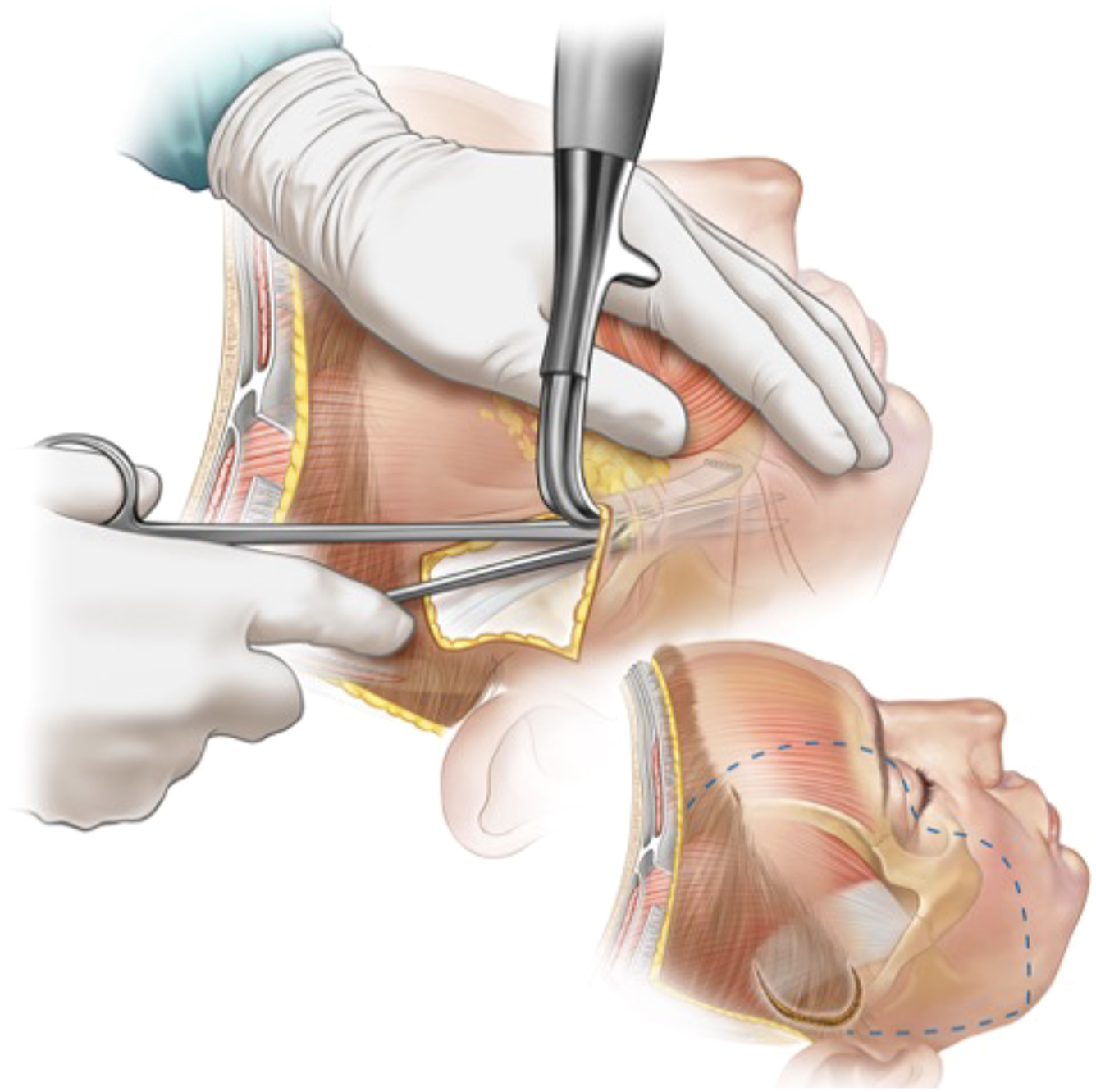 Just as with traditional facelift procedures, the Glidelift operates in a surgical plane above the superficial musculoaponeurotic system (SMAS) layer [ ]. This strategic positioning safeguards the facial nerves from potential harm, allowing for appropriate plication of the mobile SMAS via sutures without risking exposure of the nerves lying beneath. Moreover, the procedure enables a vertical plication of the SMAS without necessitating the division of the zygomatic and masseteric retaining ligaments. This is accomplished as the subcutaneous dissection is extended medial to these retaining ligaments, which is not traditionally done during a deep plane or sub-SMAS facelift, and thus would require the division of the retaining ligaments to achieve a similar vector of plication [ ] ( Fig. 1 ).