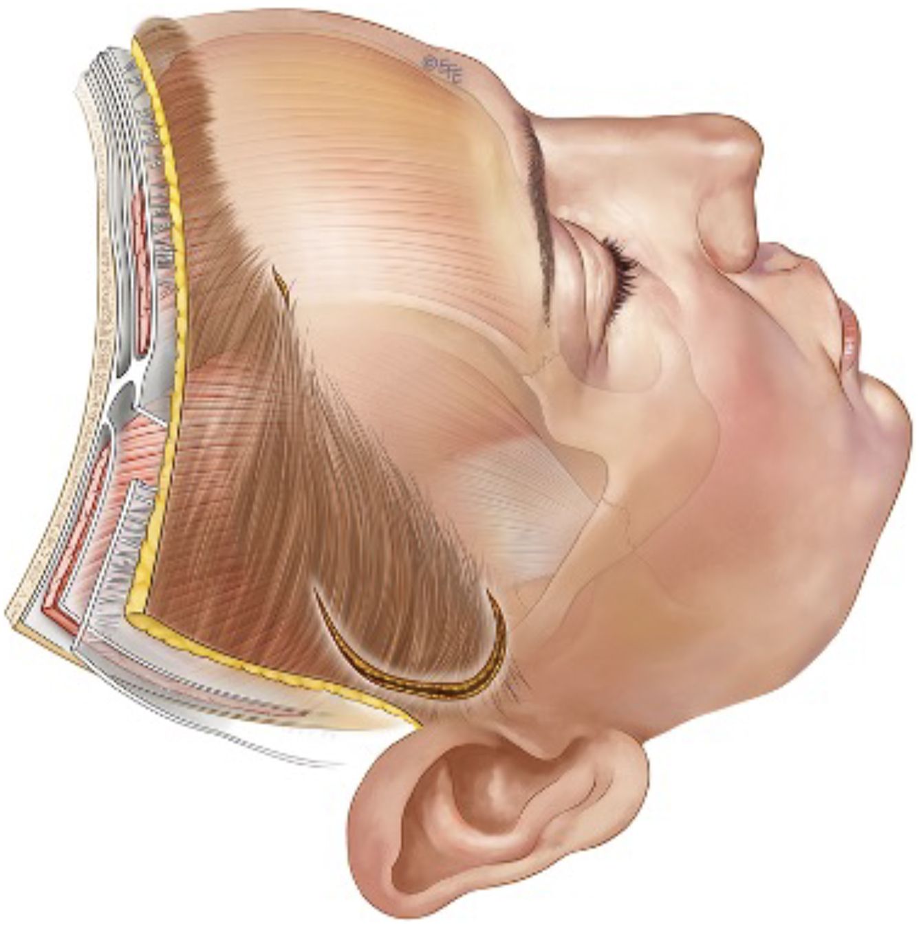After these initial tunnels have been established, the procedure continues with the extension of the sideburn incision by approximately 3 cm into the temporal hairline ( Fig. 4 ). This extension provides the necessary access and visualization for the remainder of the dissection while maintaining a focus on minimizing visible scarring.