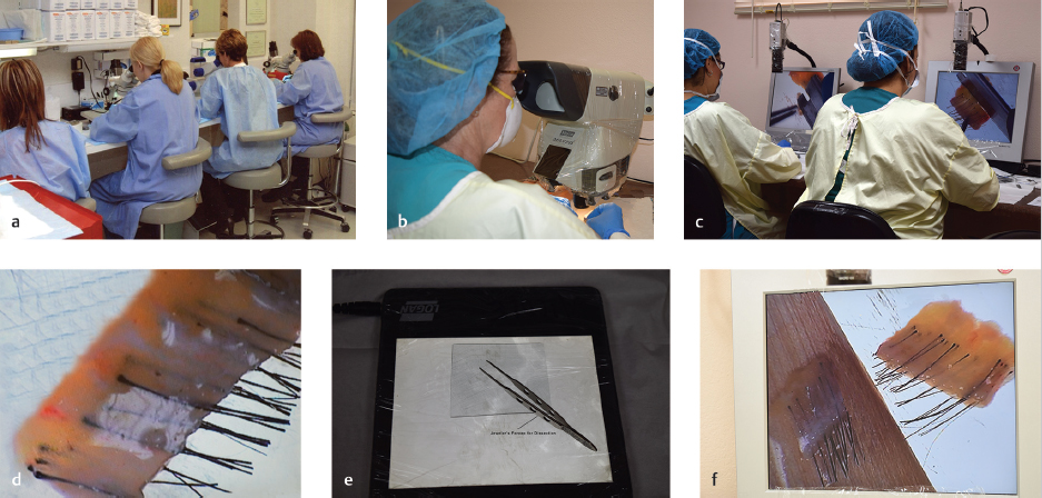 Since the publication of the study by Bernstein and Rassman in 1998 that established superior graft yield for microscopic magnification compared to loupes for graft dissection,10 use of microscopes has become the standard of care for this task. Three types of microscopes are commonly used for magnification of follicular units and will be compared later. The goal of these devices is to facilitate visualization and preservation of critical graft structures, and to prevent inadvertent transection of hair DS during the slivering and dissection process.