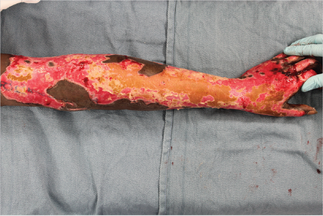 Noncircumferential second- and third-degree burns to the upper extremity.