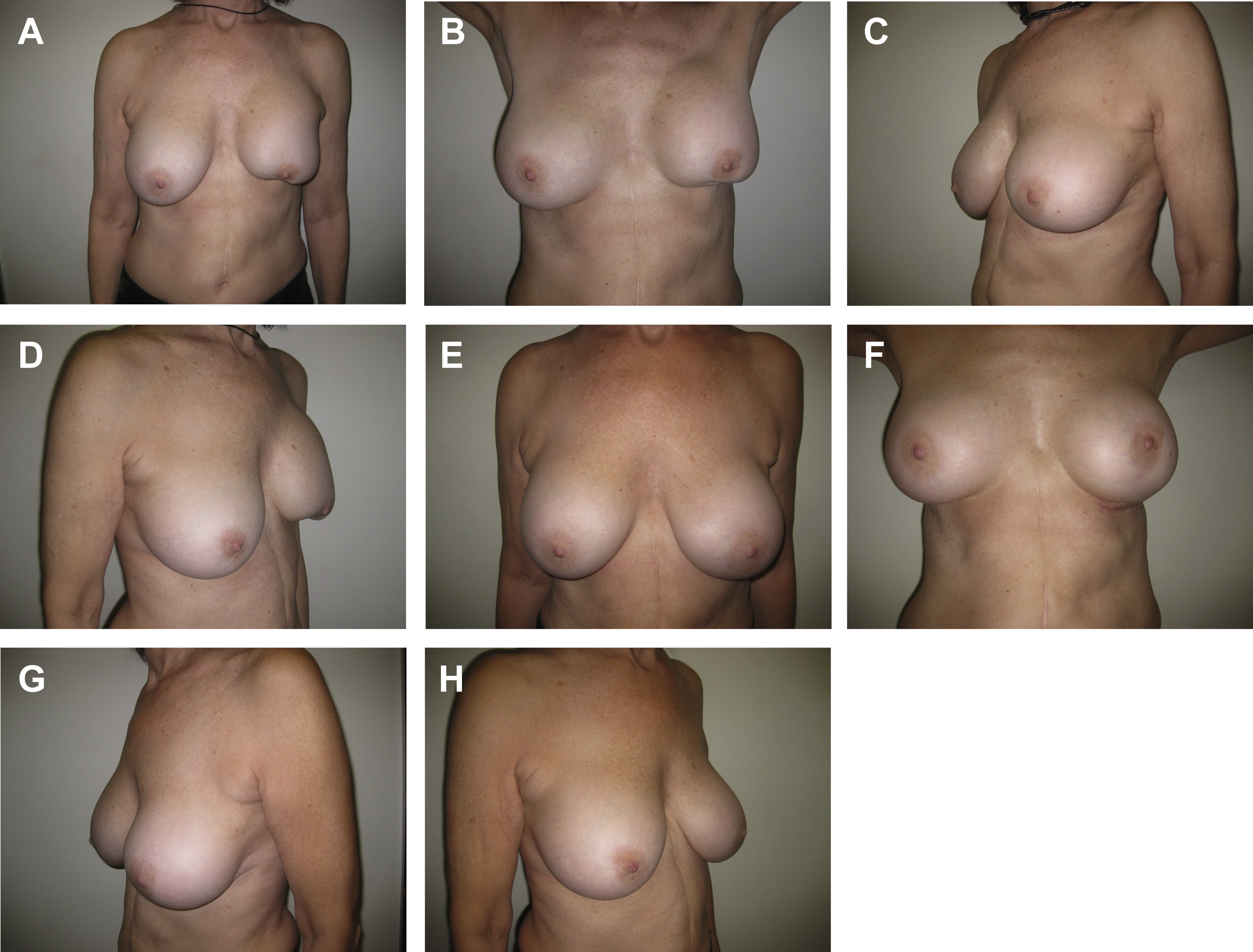 A variety of biologic and synthetic materials are used for soft tissue support during breast surgery. Soft tissue support may be required to shape breast tissue or control breast implant position ( Fig. 2 ). Over the past decade, experience with several different types of acellular dermal matrices (ADMs) has been described extensively. Recently, early experience with poly-4-hydroxybutyrate (P4HB) scaffolds (Galatea Surgical, Lexington, Massachusetts) in breast surgery has been promising. GalaFLEX is a macroporous, monofilament, long-term resorbable implant. It is a scaffold that allows vascularized tissue ingrowth and becomes completely replaced with type I and type III collagen by 18 months to 24 months postoperatively. Adams and Moses described the use of P4HB for soft tissue reinforcement in the inferior pole during central mound mastopexy in 11 patients. Some breast settlement occurred between 1 month and 3 months postoperatively but there was no statistically significant change between 3 months and 12 months postoperatively from the sternal notch to the most inferior point on the breast. A multicenter observational study of 62 patients who underwent either mastopexy or reduction mammaplasty reported 89.7% of patients had successful ptosis correction and maintenance at 1 year postoperative. Nair and Mills reported positive experience in 5 patients treated with placement of GalaFLEX in direct contact with the breast implant for treatment of capsular contracture and to provide soft tissue support. Levy and colleagues recently compared 192 cases using ADMs and 112 cases using P4HB mesh in immediate expander-based breast reconstruction. Their findings suggest P4HB mesh is a safe and less costly alternative to ADMs in expander-based breast reconstruction, with trends toward decreased rates of infection, seroma, and need for device removal with P4HB. Although early reports for P4HB scaffolds in breast surgery have been positive, more studies are necessary to evaluate outcomes in breast augmentation and breast augmentation-mastopexy as well as revision surgery.