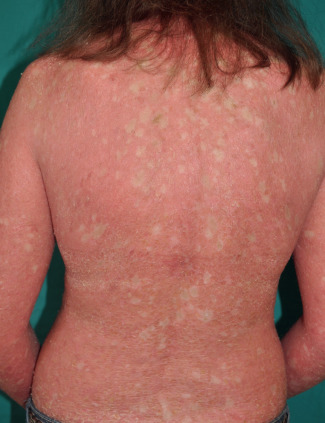 Infants usually do not present with the marked erythroderma and widespread blistering seen in classic EI, and later in life there is a milder course with more superficial skin shedding and a lack of erythema. Peeling skin syndromes can have a similar clinical appearance but do not feature vacuolization of the granular layer. Recurrent blistering is also a feature of epidermolysis bullosa simplex, but this disorder does not have associated hyperkeratosis other than an occasional palmoplantar keratoderma and can be differentiated based on deeper blisters due to basal epidermolysis.