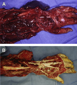 Many opportunities to use the spare parts surgery arise from amputated hands or arms. Over 100,000 digital amputations occur each year in the United States. Fewer than 30% are replanted. Nonreplantable amputated parts may provide tissue pieces that can be used as grafts. The patient, then, is not subjected to further mobility in other parts of their body by harvesting tissues for grafts or flaps. For the most part, any tissue that is somewhat preserved can be used as spare parts. A table saw injury that renders 1 digit not replantable, may supply the others injured digits with nerve grafts, nailbeds, skin grafts, tendon grafts, bone grafts, or even vascularized joints, bone, or filleted fasciocutaneous flaps ( Figs. 1 and 2 ). Arm amputations that have surpassed the allowable ischemia time may provide vascularized forearm fasciocutaneous fillet tissue to cover residual exposed bones. Spare part tissue transplantation can also be used for more than 1 function. Reports of immediate tissue transplantation for soft tissue coverage and restoration of circulation using the flap as a flow-through conduit have demonstrated this technique.