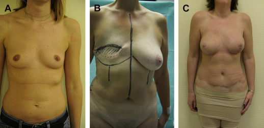 Other patients looking for an alternative method of breast reconstruction are those with a previous history of liposuction or abdominal surgery with laparotomy scars. Cancer patients with a recurrence or contralateral disease also present a challenge when a DIEP flap was already used for unilateral reconstruction. Fig. 1 illustrates typical candidates for autologous breast reconstruction not eligible for a DIEP flap.