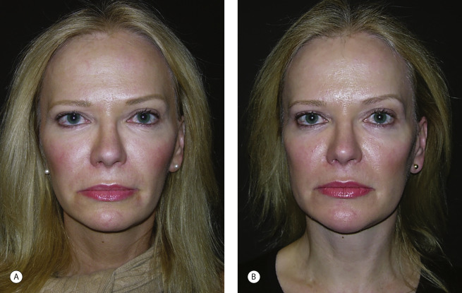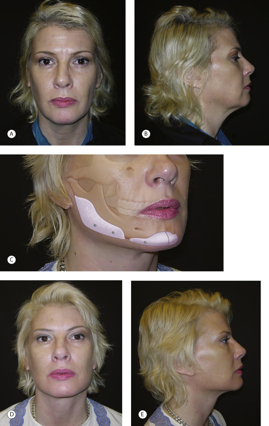 Most often, facial skeletal augmentation is done to enhance facial appearance in patients whose skeletal relationships are considered within the normal range. They want more definition and angularity to their appearance. Other patients desire to “balance” their facial dimensions. The woman in Fig. 1.2 underwent chin and mandible angle augmentation at the time of rhytidectomy to provide angularity and balance between her upper and narrower lower face.