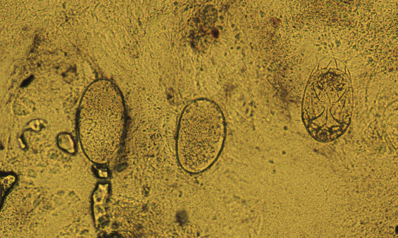 Infestation begins when a fertilized female mite arrives on the skin surface. Within an hour, the female excavates a burrow in the stratum corneum (dead, horny layer) ( Fig. 15.2B ). During the mite’s 30-day life cycle, the burrow extends from several millimeters to a few centimeters in length. The burrow does not enter the underlying epidermis except in the case of hyperkeratotic Norwegian scabies, a condition in which scaly, thick skin develops in intellectually disabled, immunosuppressed, or elderly patients in the presence of thousands of mites. Eggs laid at the rate of two or three a day ( Fig. 15.3 ) and fecal pellets (scybala) are deposited in the burrow behind the advancing female. Scybala are dark, oval masses that are seen easily with the eggs when burrow scrapings are examined under a microscope. Scybala may act as an irritant and may be responsible for some of the itching. The larvae hatch, leaving the egg casings in the burrow, and reach maturity in 14 to 17 days. The adult mites copulate and repeat the cycle. Therefore, 3 to 5 weeks after infestation, there are only a few mites present. This life cycle explains why patients experience few, if any, symptoms during the first month after contact with an infested individual. After a number of mites (usually less than 20) have reached maturity and have spread by migration or the patient’s scratching, the initial, minor, localized itch evolves into intense, generalized pruritus.