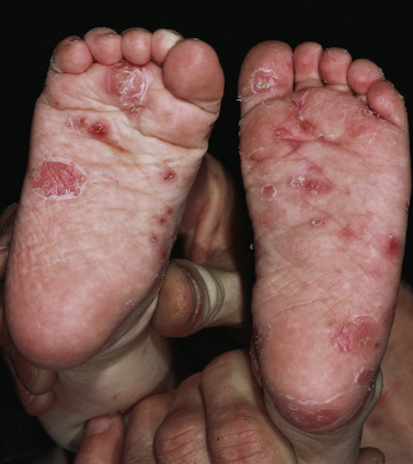 Pustules on the palms and soles of infants