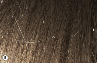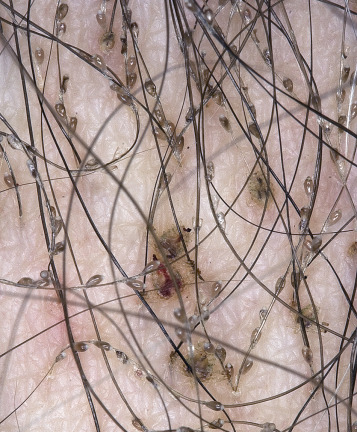 -inch-long metal teeth that penetrate more hair with each pass, collecting both lice and nits. It is available online and at pharmacies. As many nits as possible should be removed to prevent reinfestation. A close haircut may be considered for patients with hundreds of nits.