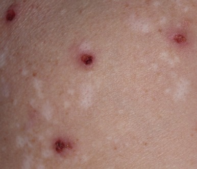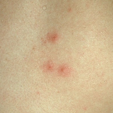 | Insect bite reactions | 0.7 | Stinging and biting arthropods | Insect often not seen by patient | Papules with central puncta, and often grouped Asymmetric distribution | Urticaria Impetigo Mucha–Habermann disease | – |