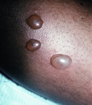 Papules and, in highly allergic individuals, bullae occur only in people who are allergic and who attract the insects ( Fig. 11.3 ).