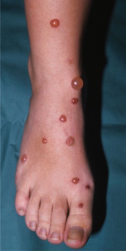 | Miliaria | 0.1 | Sweat duct occlusion | Fever or occlusion of affected skin | Numerous small papules Trunk, especially back, usually affected | Contact dermatitis Folliculitis Candidiasis | Biopsy (not usually necessary) |